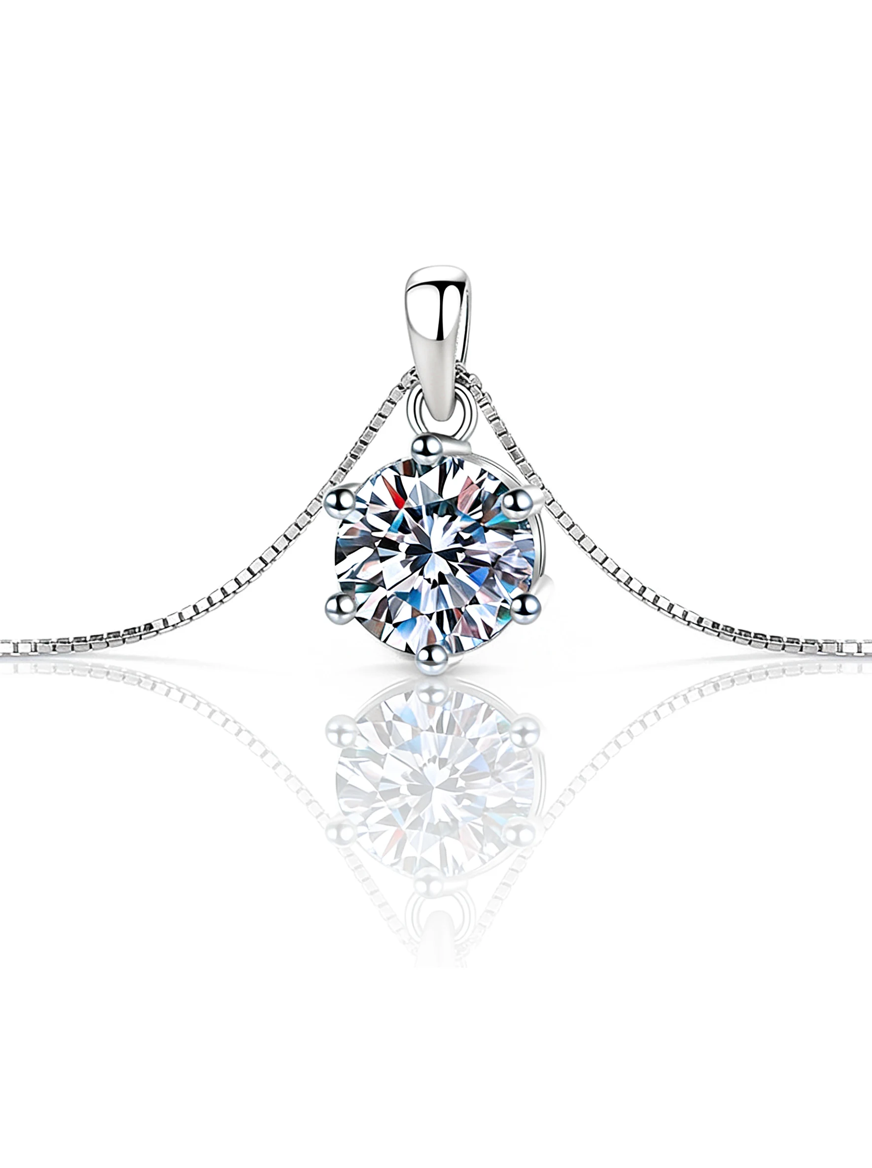 Celebrate the thrill of first love with this 6-prong solitaire necklace on a sleek box chain, featuring a 0.5–1CT stone that sparkles elegantly for everyday wear.