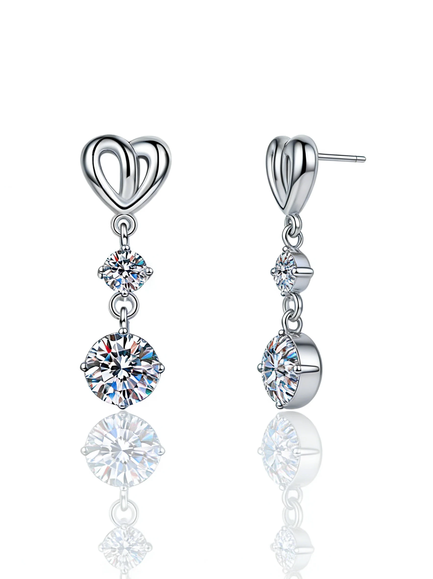 A refined expression of elegance, these moissanite drop earrings feature a 6-prong setting suspended from a sleek box chain, designed to shimmer with every movement.