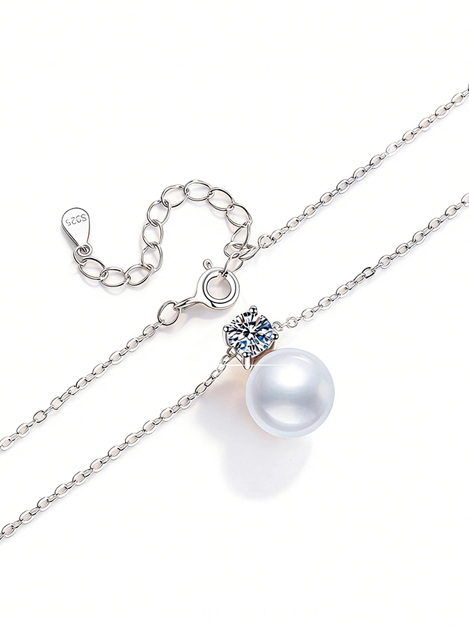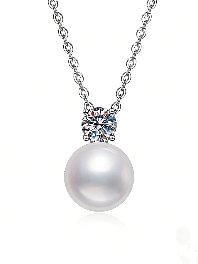 A quiet harmony of light and softness, this necklace pairs a 0.5CT moissanite with a luminous 10mm pearl—capturing a love that is gentle, yet enduring.